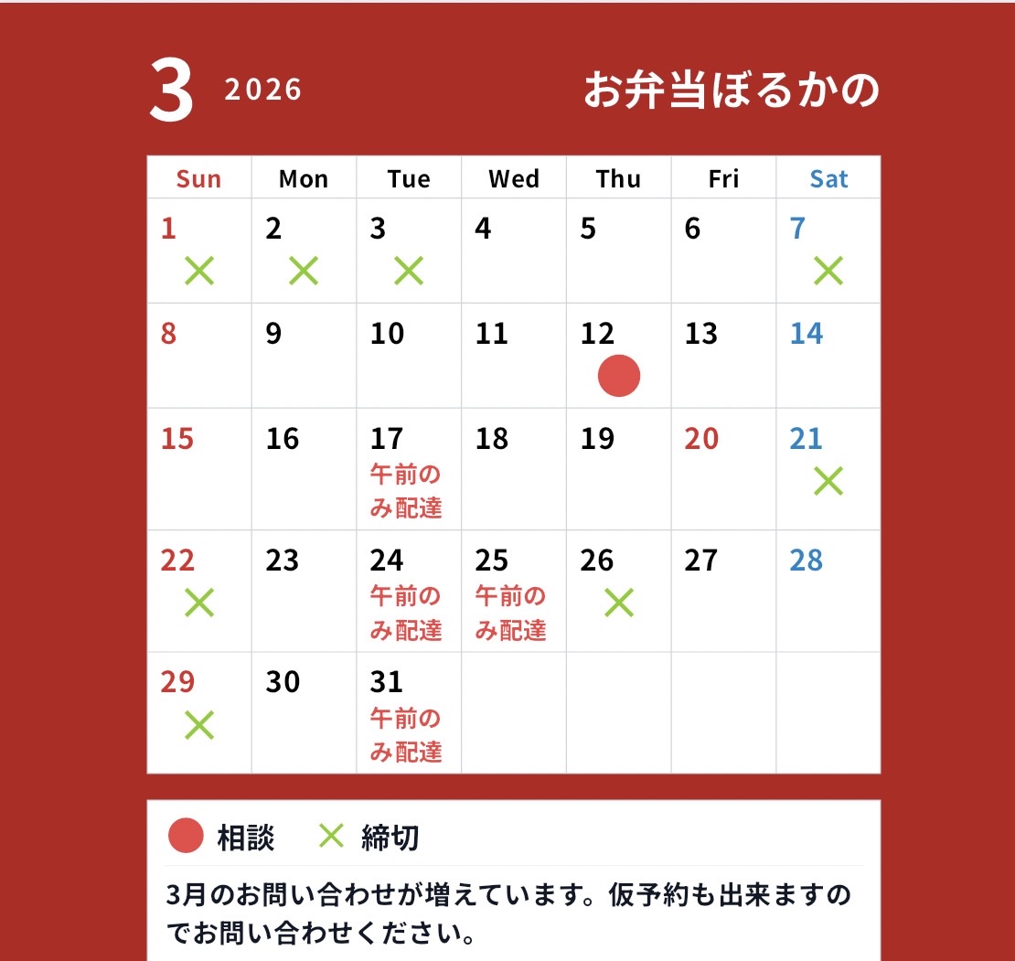 | 【1番人気!!】ぼるかの弁当 | 各種 ¥1,200 |