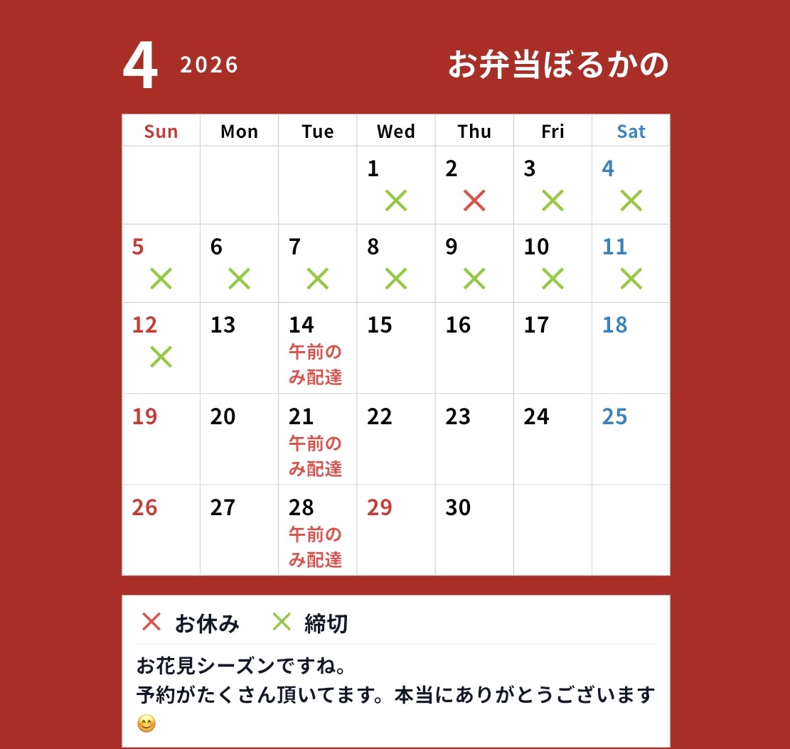| 【1番人気!!】ぼるかの弁当 | 各種 ¥1,200 |