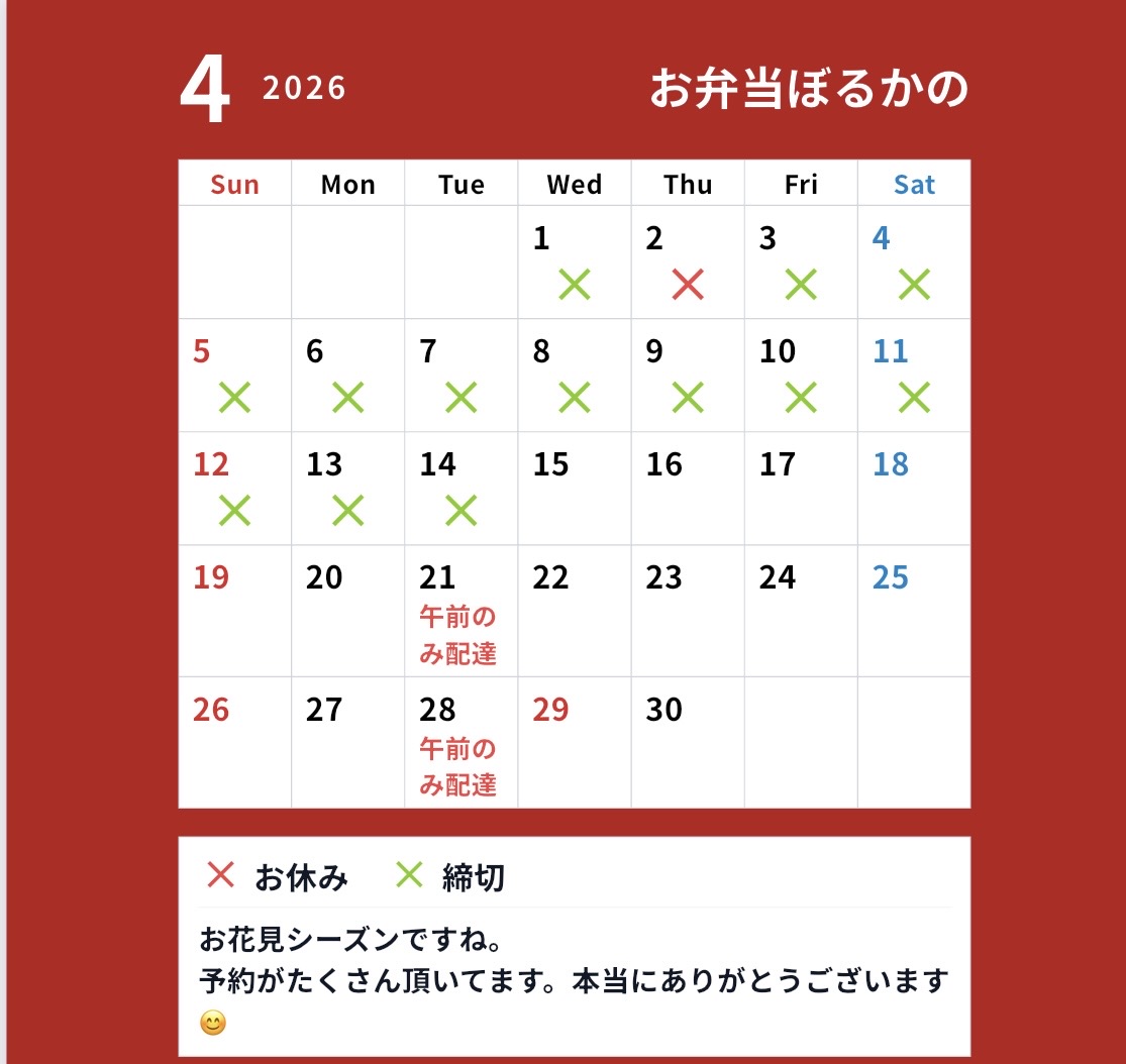 | おかずたっぷり弁当(12マス) | 各種 ¥1,400 |