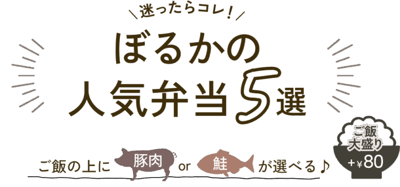 | 【1番人気!!】ぼるかの弁当 | 各種 ¥1,200 |