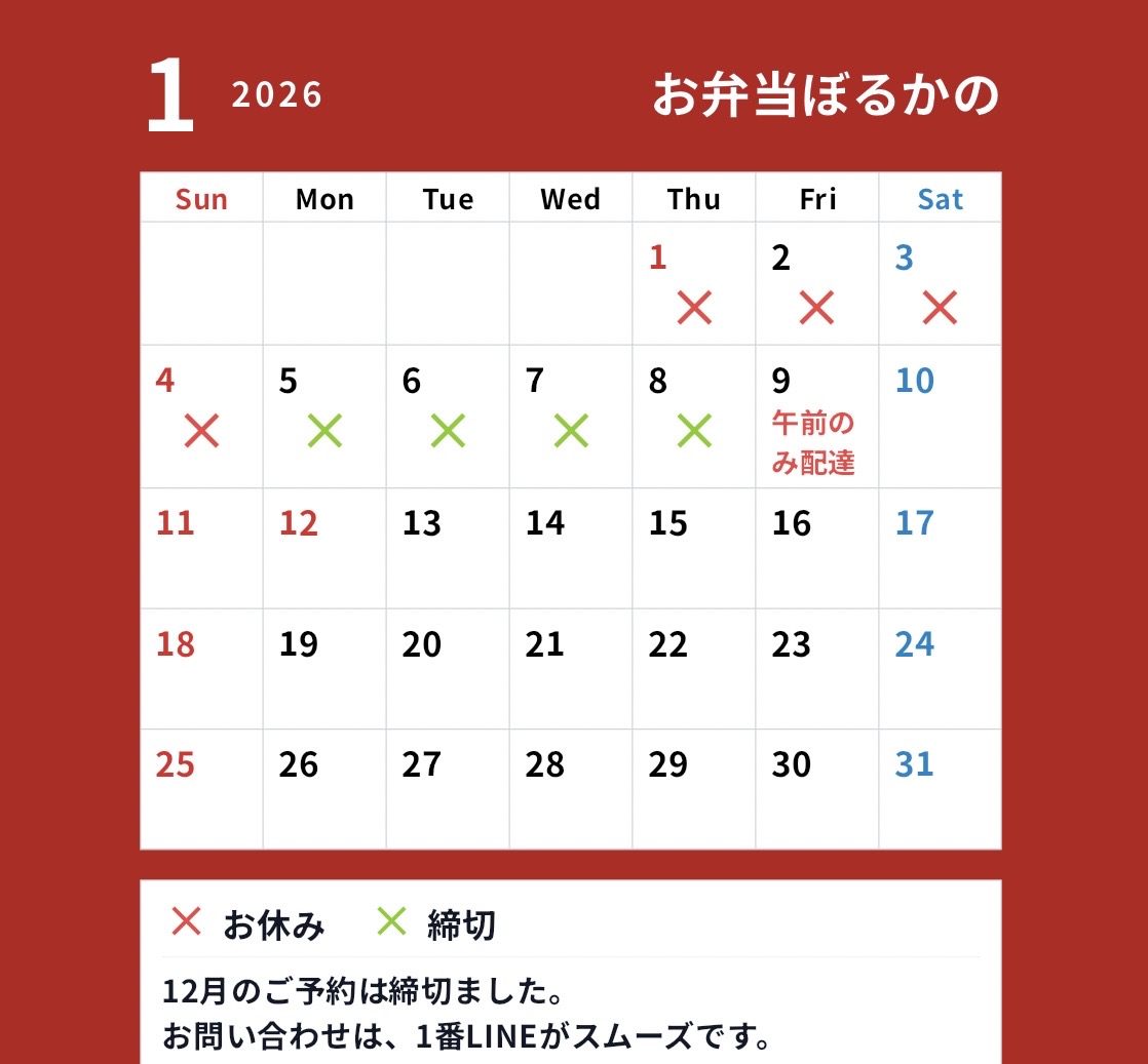 | おかずたっぷり弁当(12マス) | 各種 ¥1,400 |
